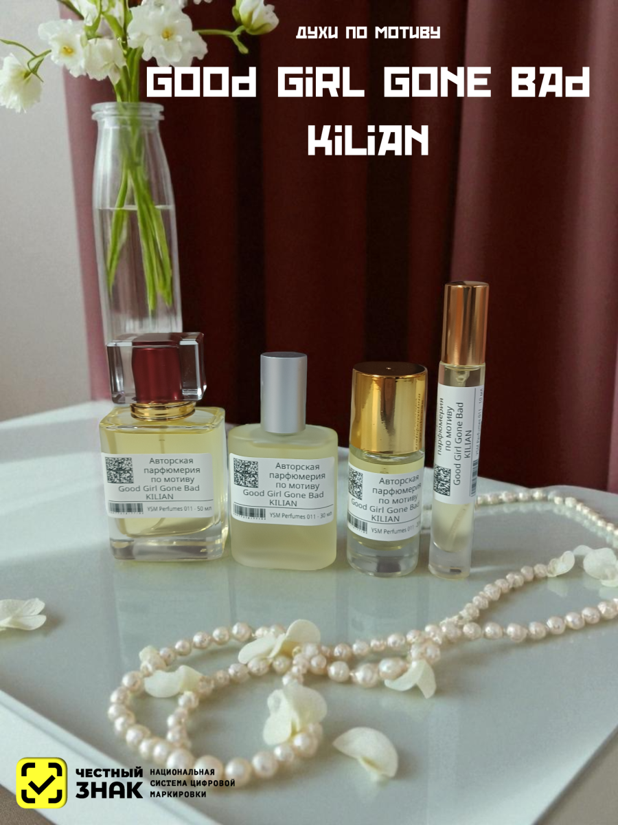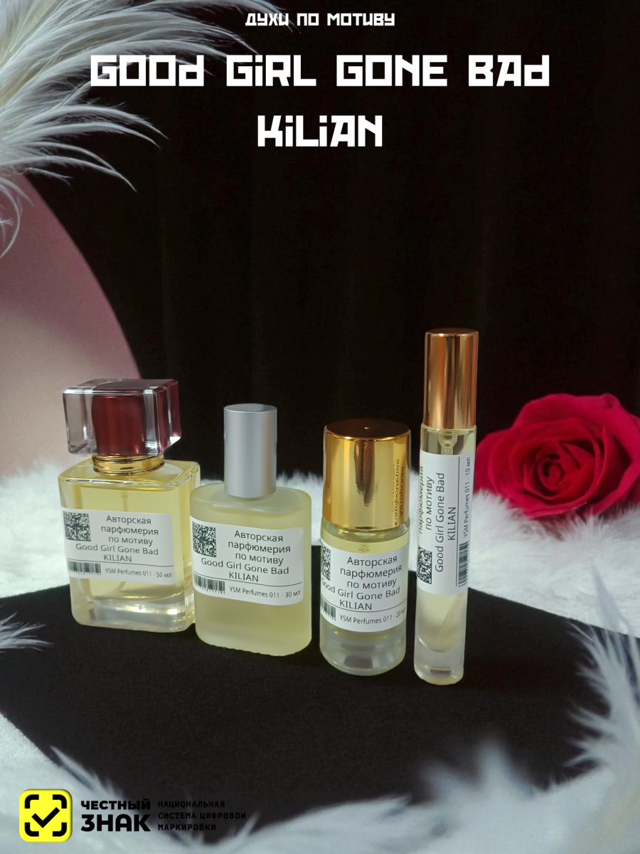 Известный французский парфюмерный бренд Kilian выпустил женский аромат Good Girl Gone Bad в 2012 году. Он принадлежит к группе цветочные фруктовые ароматы. Парфюм входит в коллекцию In the Garden of Good and Evil, в основе которой лежит миф о первородном грехе. Парфюмером является Alberto Morillas.