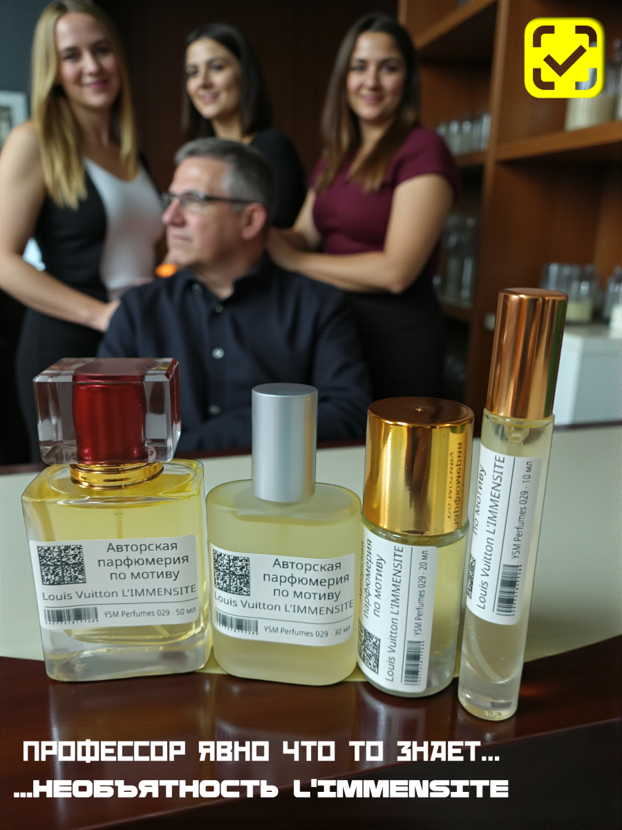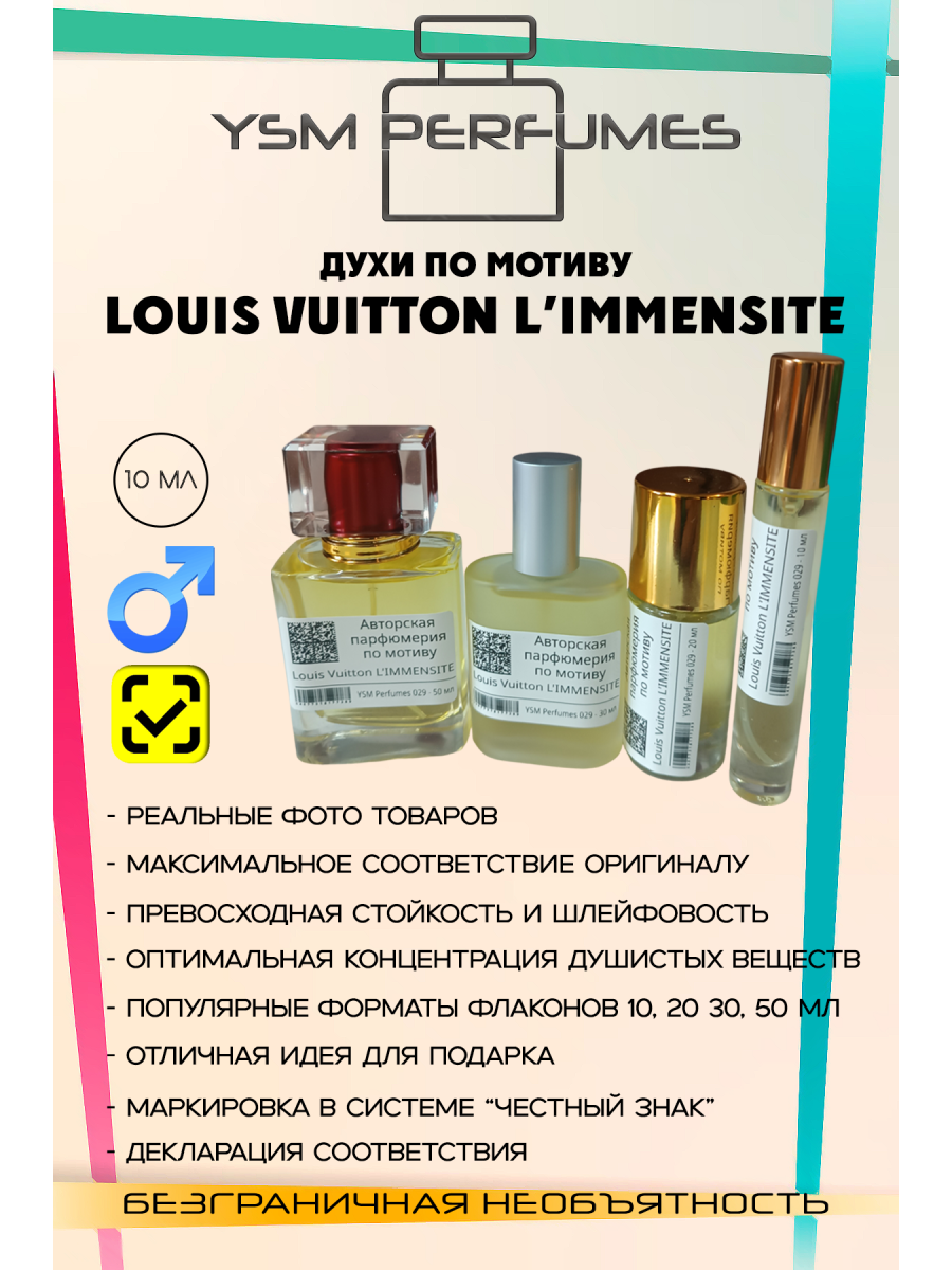 Louis Vuitton L'Immensité (произносится как «Лиммансите», в переводе с французского — «Необъятность» или «Бескрайность») — это мужской аромат, выпущенный в 2018 году. Его создателем стал штатный парфюмер дома LV Жак Кавалье (Jacques Cavallier-Belletrud).